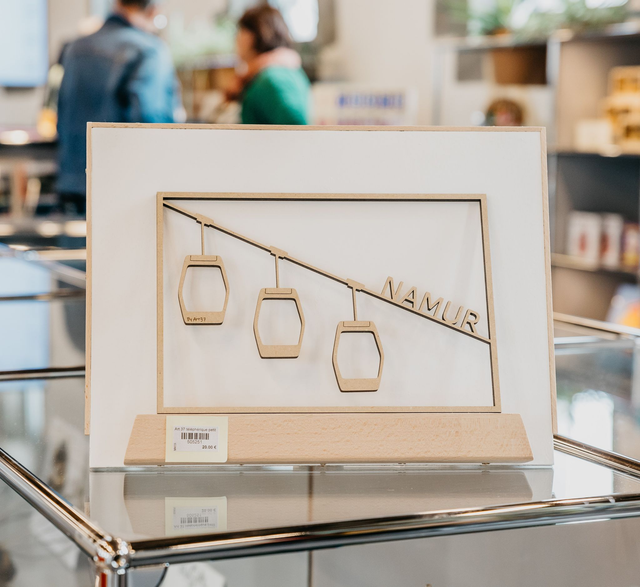 Cadre en bois représentant le téléphérique de Namur fabriqué par Amandine d'Art37.